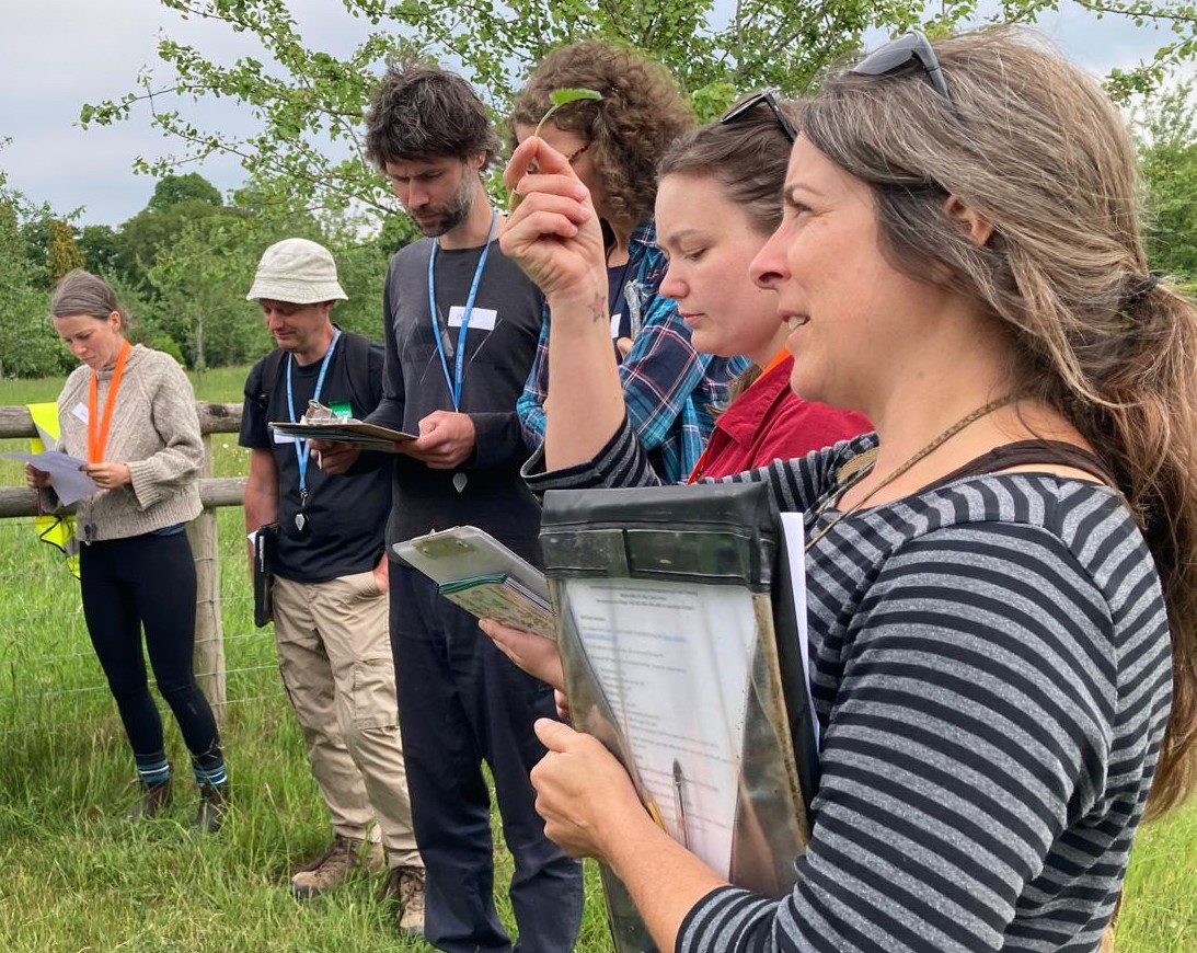 Fuelled by superb hot coffee from Kontext Coffee and delicious cakes, everyone gathered in the sunshine at Ladyridge Meadow courtesy of the Clay Estate. We heard from a member of the estate team, Chris Hudson, about how the site was restored in 2021 and what has happened since. Our Herefordshire Meadows Rapid Assessment Survey method that will be used to assess progress was explained to everyone by Meadows Advisor Rory. Working in small groups, we practiced recording broad-leaved plants using quadrats across the site. On completion we came together to share interesting identifications, tips and results. Compared to the 2021 baseline survey, we recorded a 3.5 times increase in the number of desirable broad-leaved plants. Positive indicator species present have also increased from 0 to 6 species; all great news.