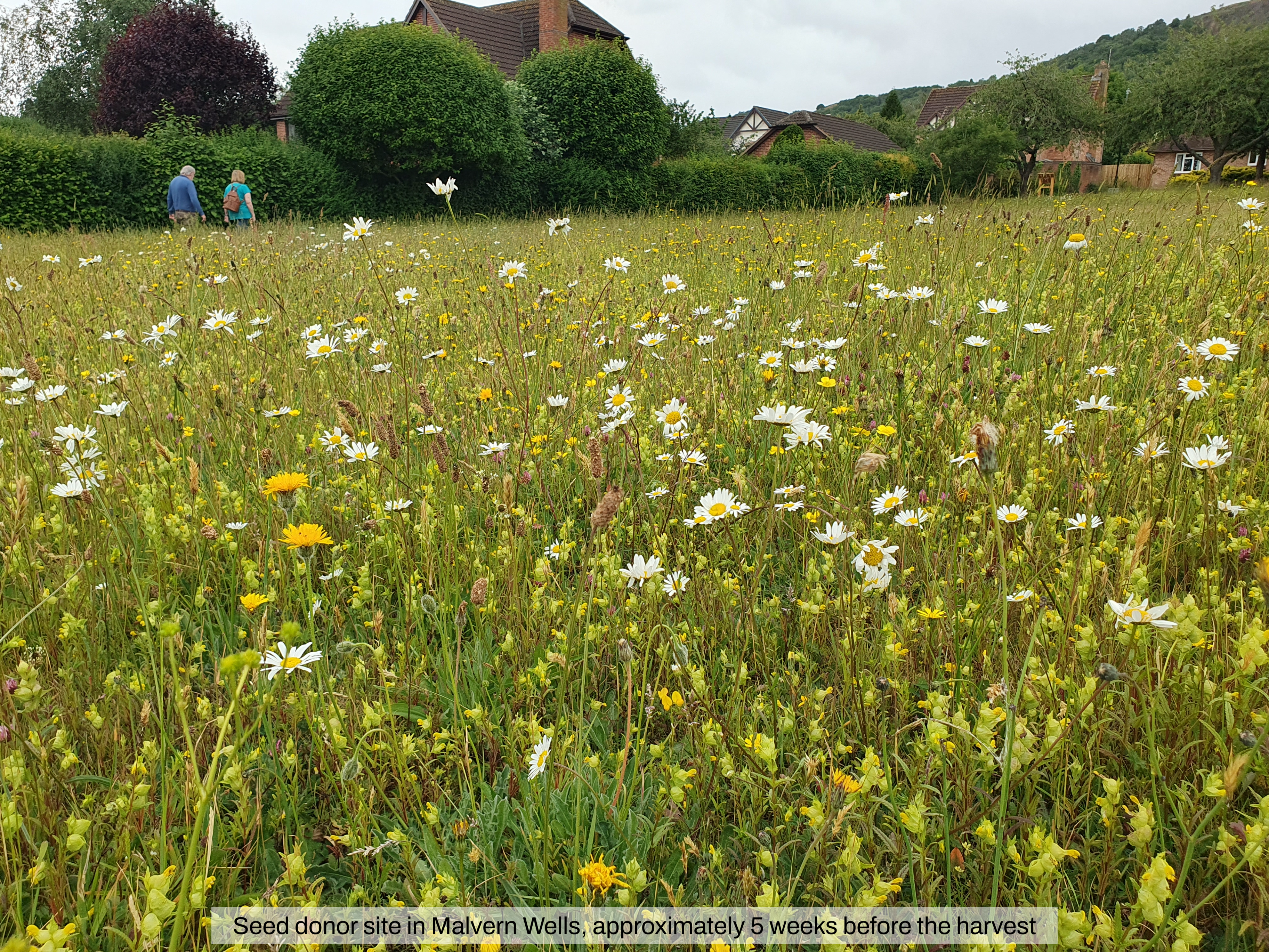 This 0.2 acre wildflower meadow estimated to produce 15 to 20 dumpy bags, unseen by Herefordshire Meadows, is the result of 20 years of conservation, introduction of local seed and some UK provenance plugs.