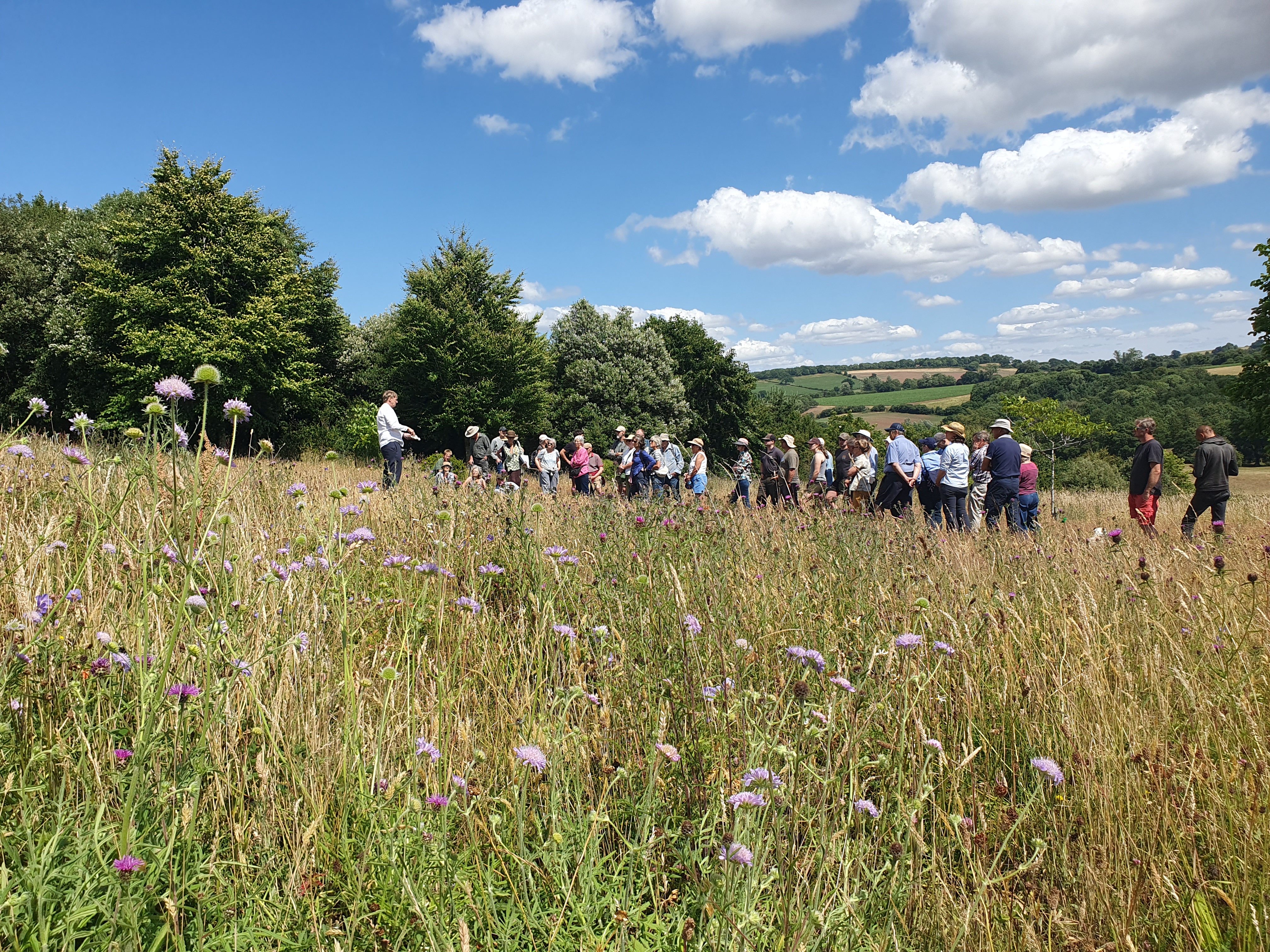 On 11th July, we assembled at Boycefield Farm for a farm walk focused on the theme of Grassland Diversity and Resilience. With fodder shortages becoming a serious concern during this recent heatwave, this helped stimulate a lively discussion led by our hosts, Lucinda and Jim Lewis.